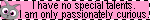 OCs, Digital Art, Reptiles/Snakes, Cats, Figure Collecting, Character/Creature Design, Baking, Interior Design, Silly Things |